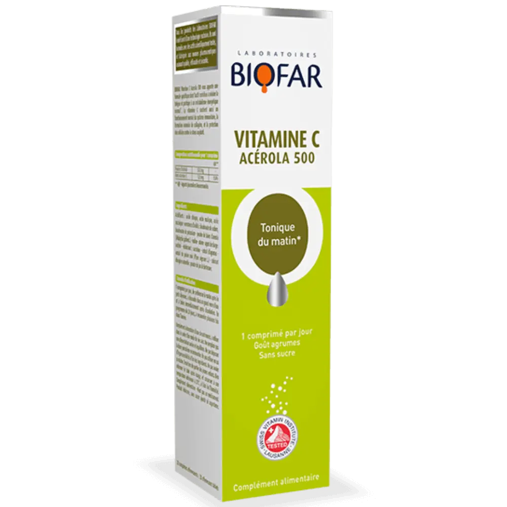 Un dosage optimal en vitamine C d’origine naturelle (acérola)… Les Laboratoires Biofar ont réuni les éléments nécessaires pour dynamiser vos journées dès le réveil. En effet, la vitamine C participe au fonctionnement normal du système immunitaire et à réduire votre état de fatigue .