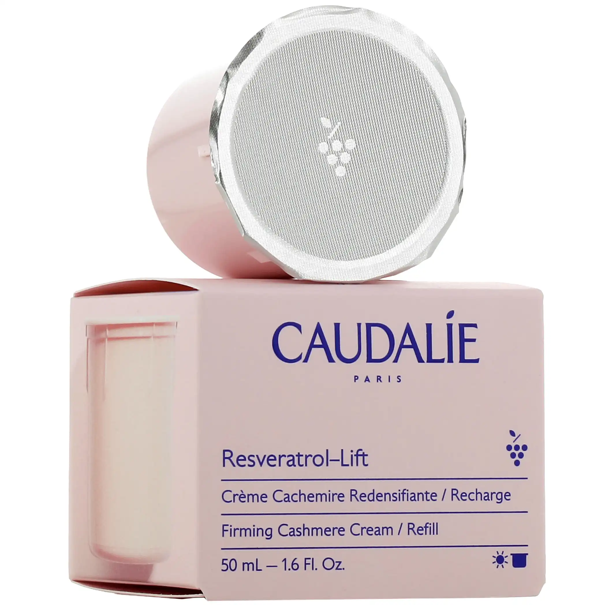 Présentations proposées pour la crème cachemire redensifiante Caudalie Resveratrol-Lift sur notre pharmacie en ligne : Pot de 50 ml, éco-recharge de 50 ml.