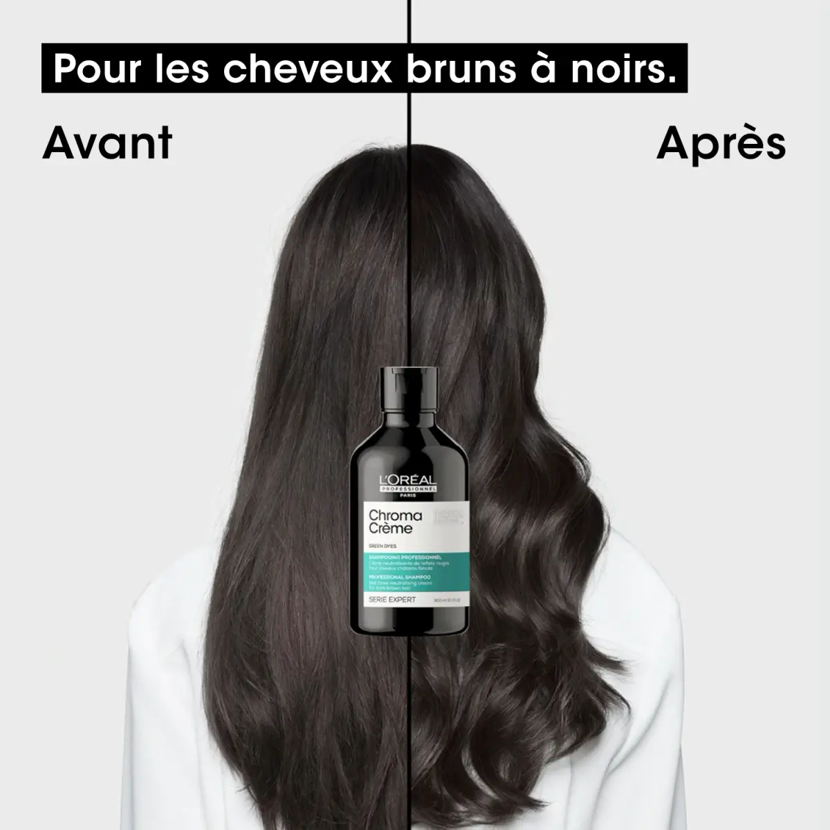 Chroma Crème Matte neutralise les reflets rouges. Pour les cheveux brun foncé à noirs.