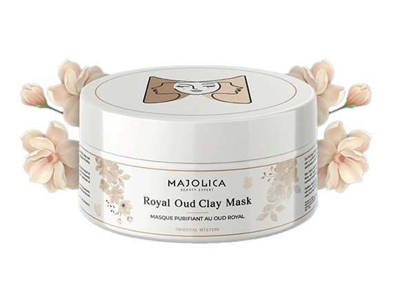 MAJOLICA – Masque Purifiant au Oud Royal (Royal Oud Clay Mask) est un masque à l’argile conçu pour purifier la peau et la nettoyer en profondeur. Il aide à absorber l’excès de sébum, à réduire la brillance et à désincruster les pores des impuretés, pour une peau plus nette, plus lisse et plus fraîche. Son parfum Oud Royal apporte une touche luxueuse pendant l’utilisation.