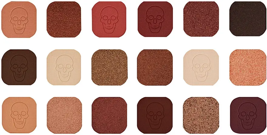 - Cette palette comprend 18 teintes hautement pigmentées et portables, avec des noms inspirés des sept péchés capitaux, dont PRIDE – une rose scintillante, DESIRE – un mat bordeaux-brun et VICES – un or bronzé.